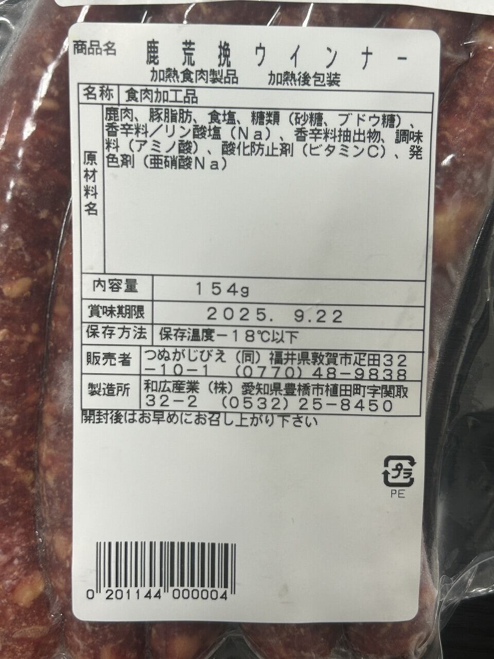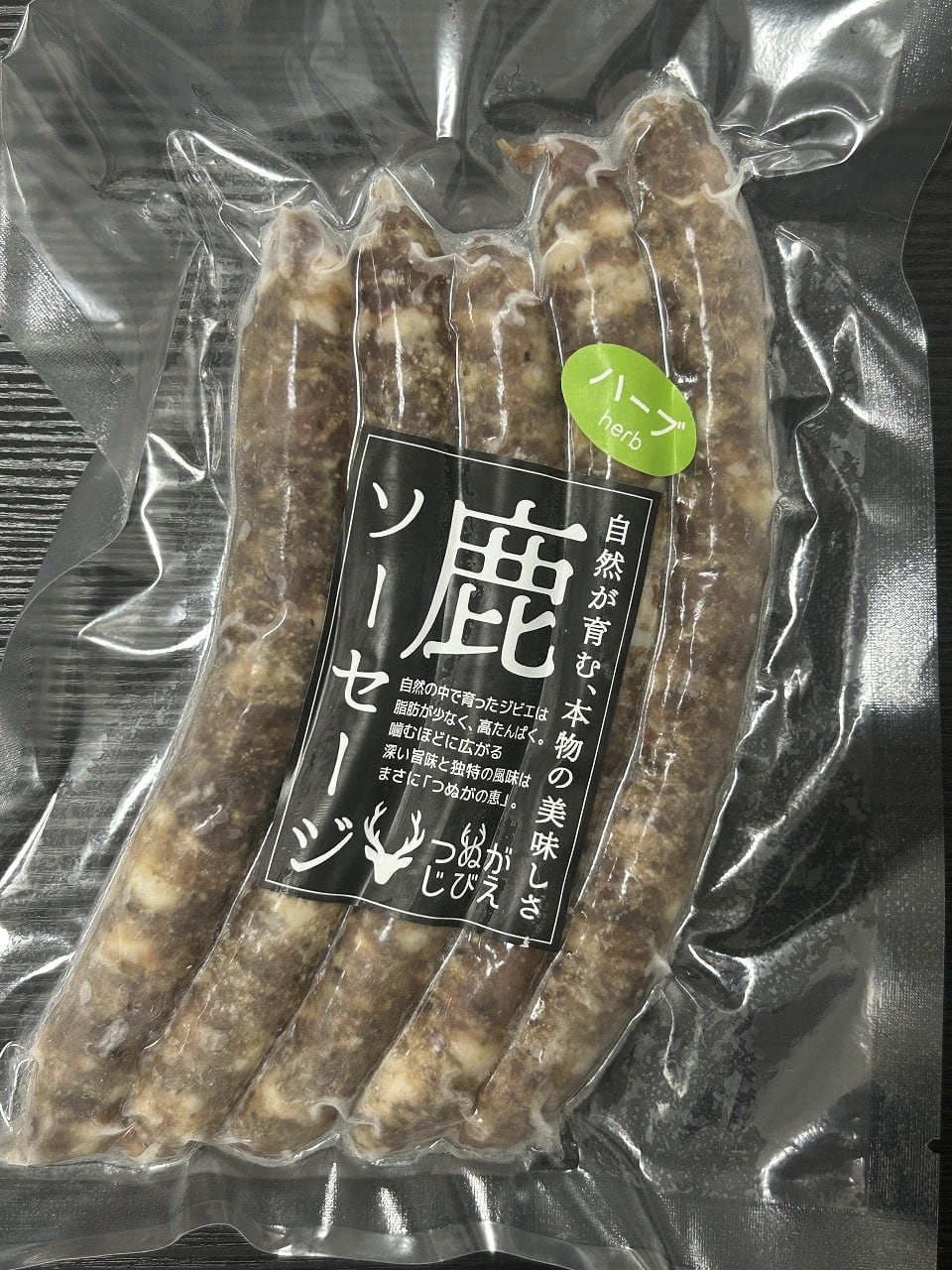 海風香る敦賀の山でたっぷり育った鹿を使ったソーセージです。